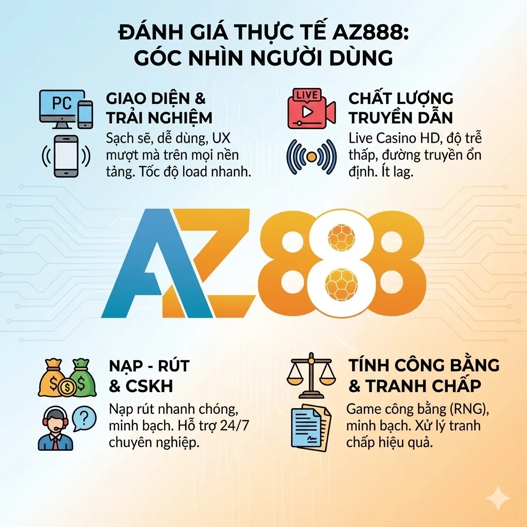 Nền tảng sở hữu giấy phép PAGCOR cùng các chứng chỉ an toàn hệ thống từ tổ chức kiểm định độc lập. Trên nhiều diễn đàn quốc tế, AZ888 nhận được đánh giá tích cực về tốc độ giao dịch và quy trình hỗ trợ người chơi.